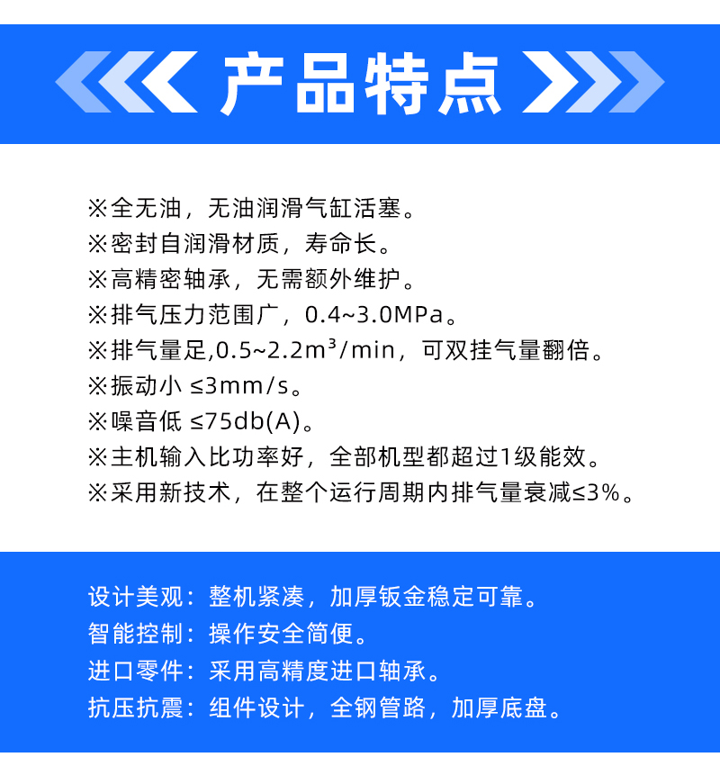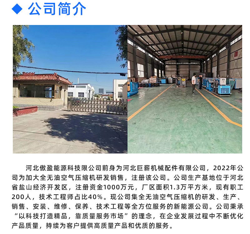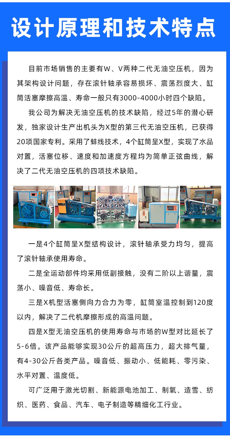 我司主营空压机、空气压缩机、无油空压机、活塞空气压缩机,产品特点:纯无油、无水冷、免维护、低震动、高压力、零污染。