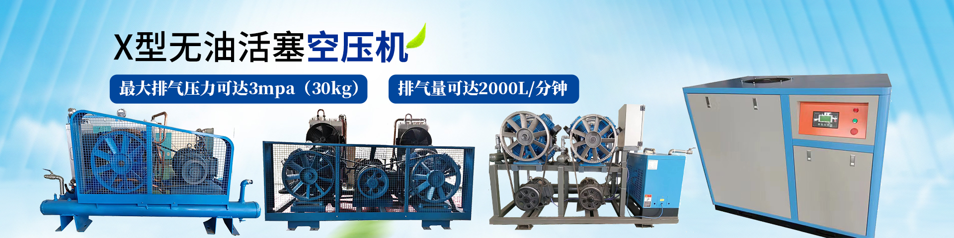 双主机实用型XWD型一体式无油活塞空压机,采用双主机设计,排气量增加一倍,弥补了无油空压机排气量不足,而导致的切割机等无法正常工作。